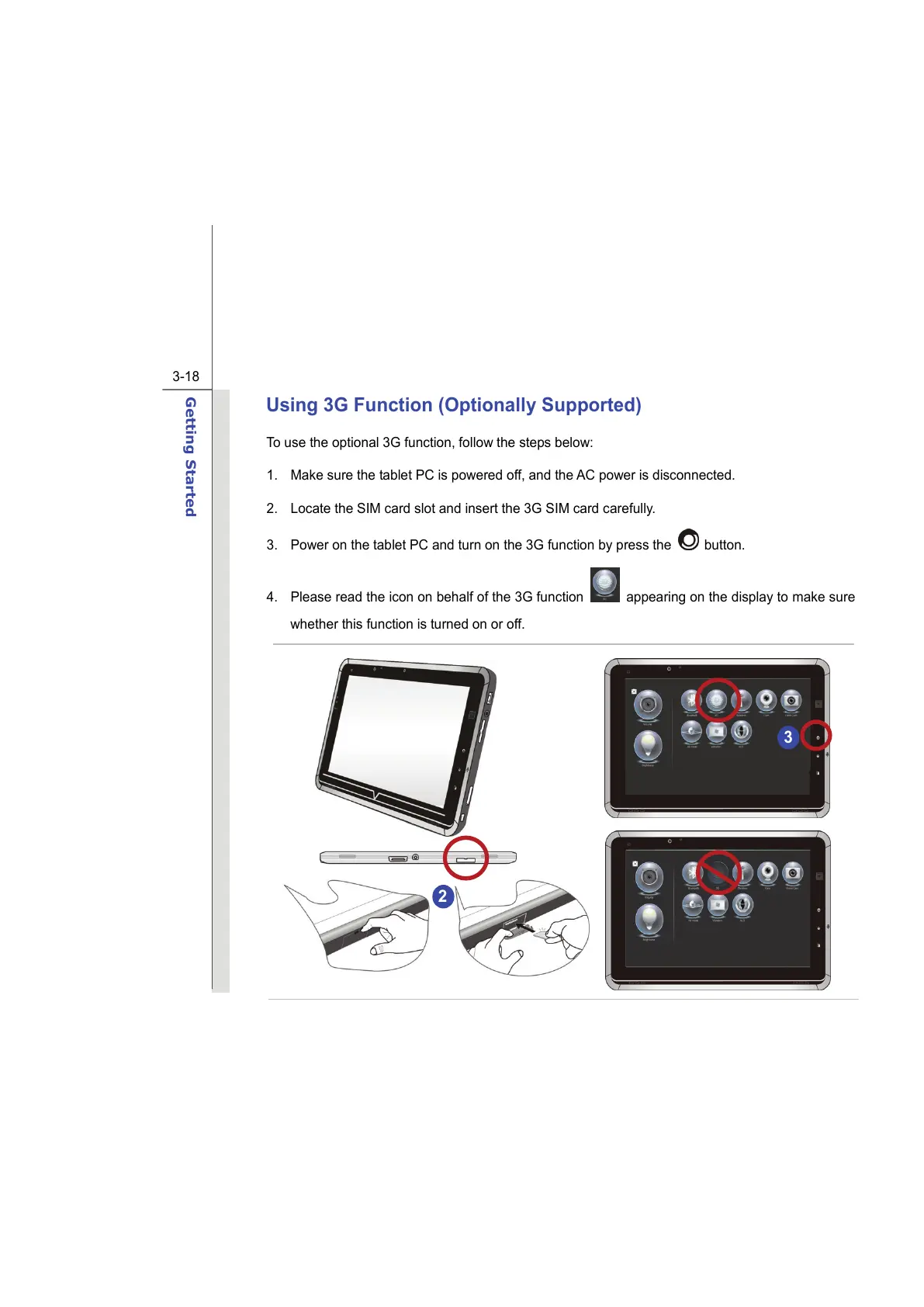 2. Locate the SIM card slot and insert the 3G SIM card carefully.
