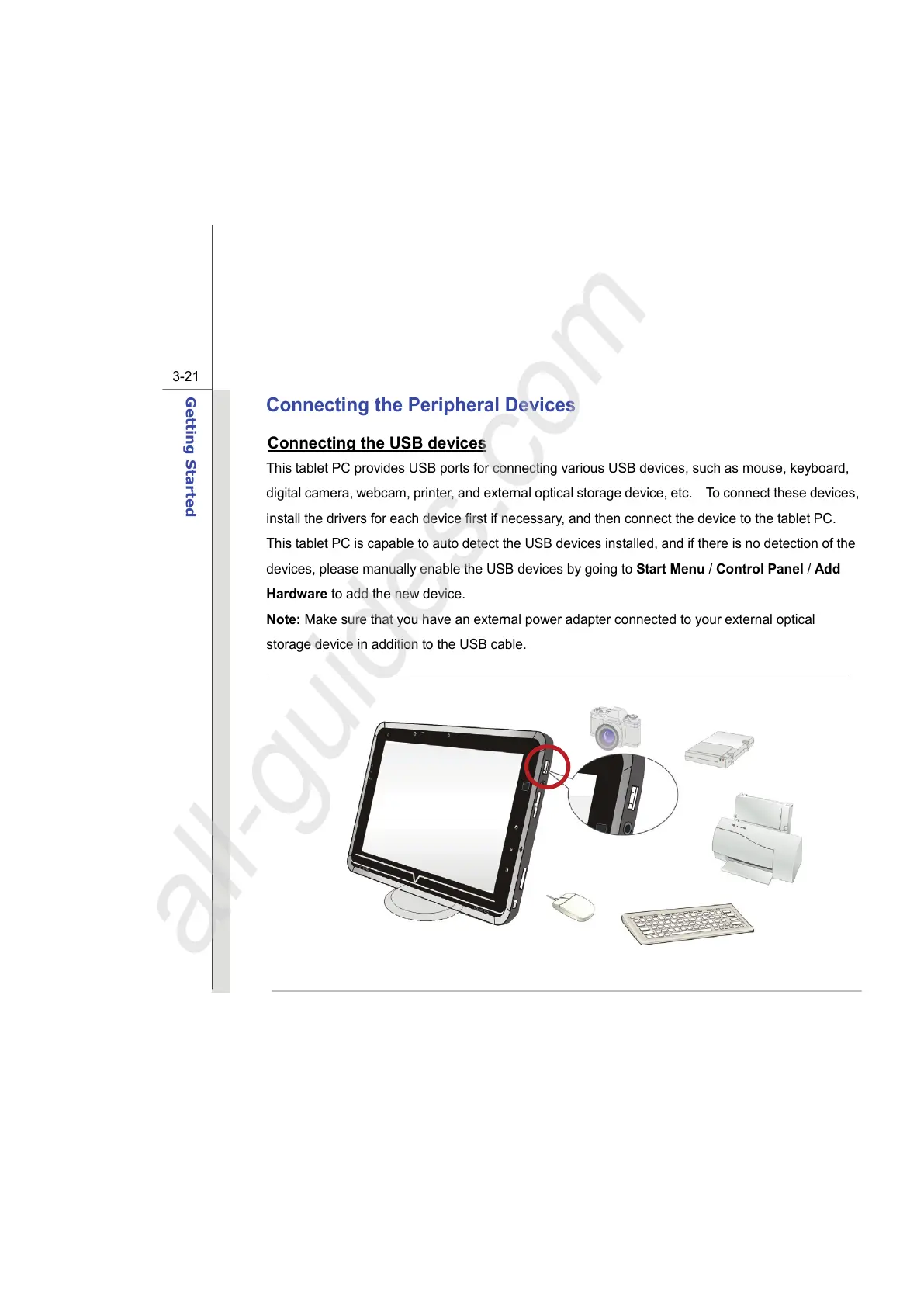 install the drivers for each device first if necessary, and then connect the device to the tablet PC.