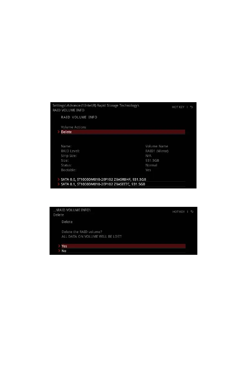 3. Select the Delete item and press Enter key to delete the selected RAID volume.