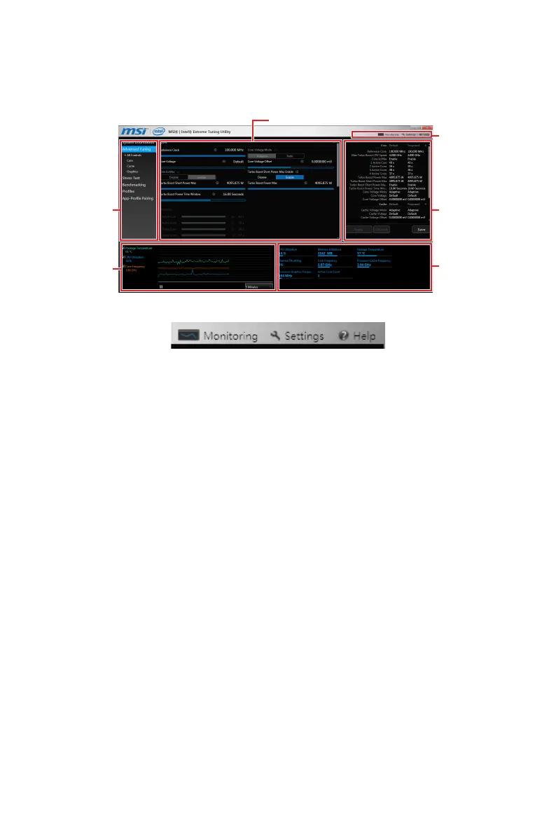 y Navigation - lists all of the major functions of Intel XTU.