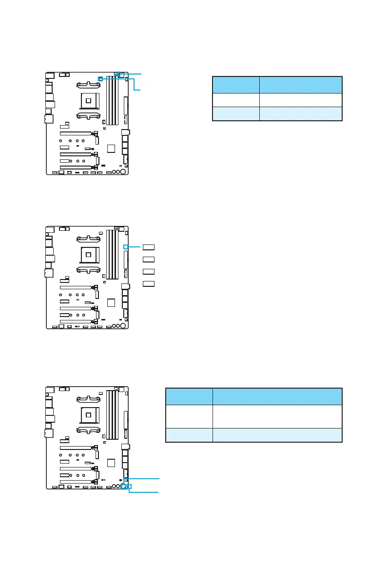 These LEDs indicate the debug status of the motherboard.