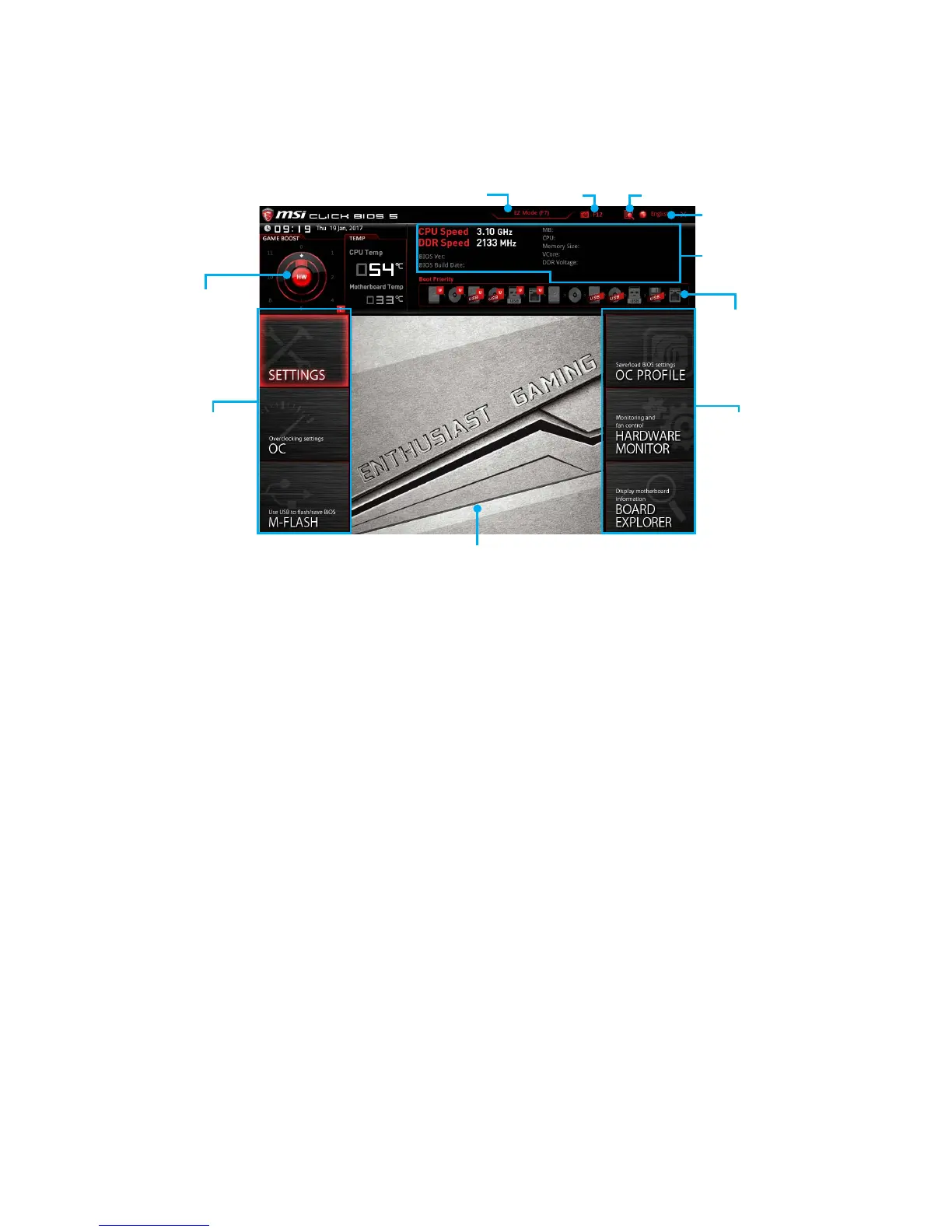 y Menu display - provides BIOS setting items and information to be configured.