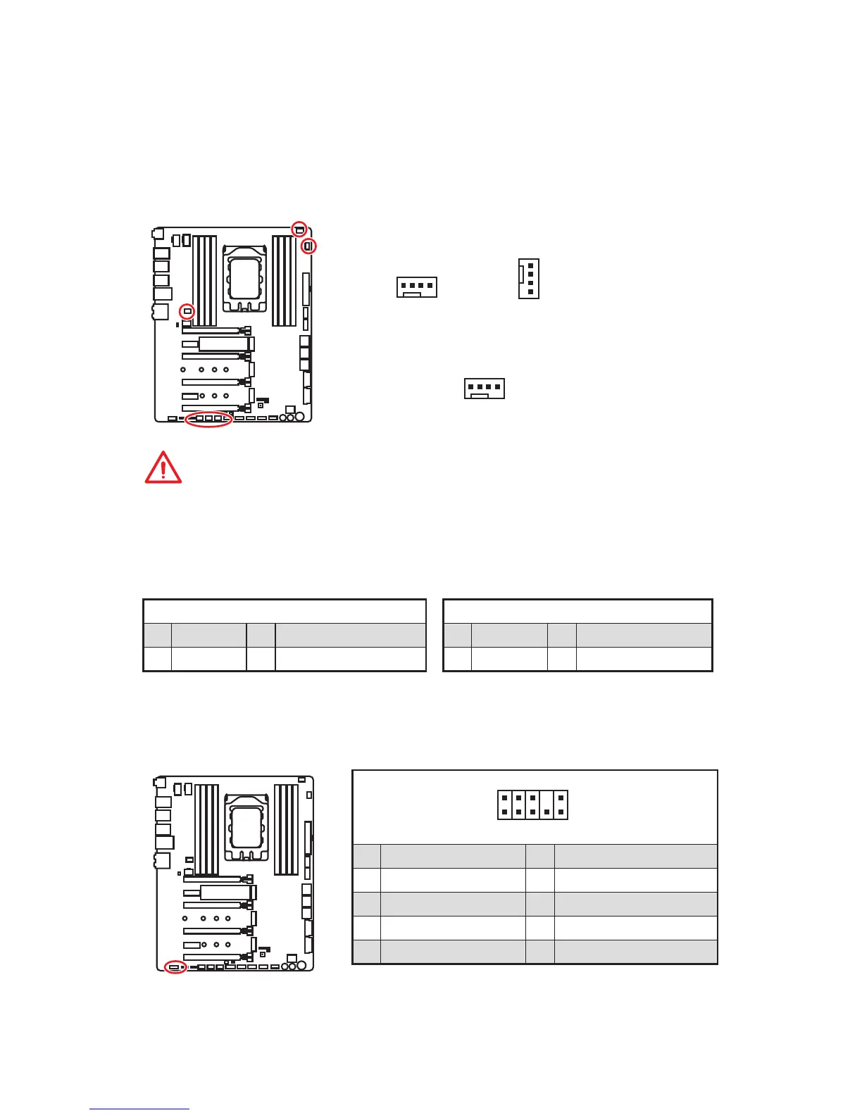 CPU_FAN1, PUMP_FAN1, SYS_FAN1~4: Fan Connectors