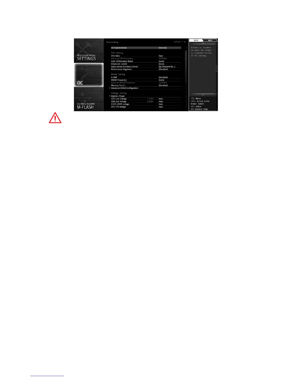 [Normal] Provides the regular OC settings in BIOS setup.
