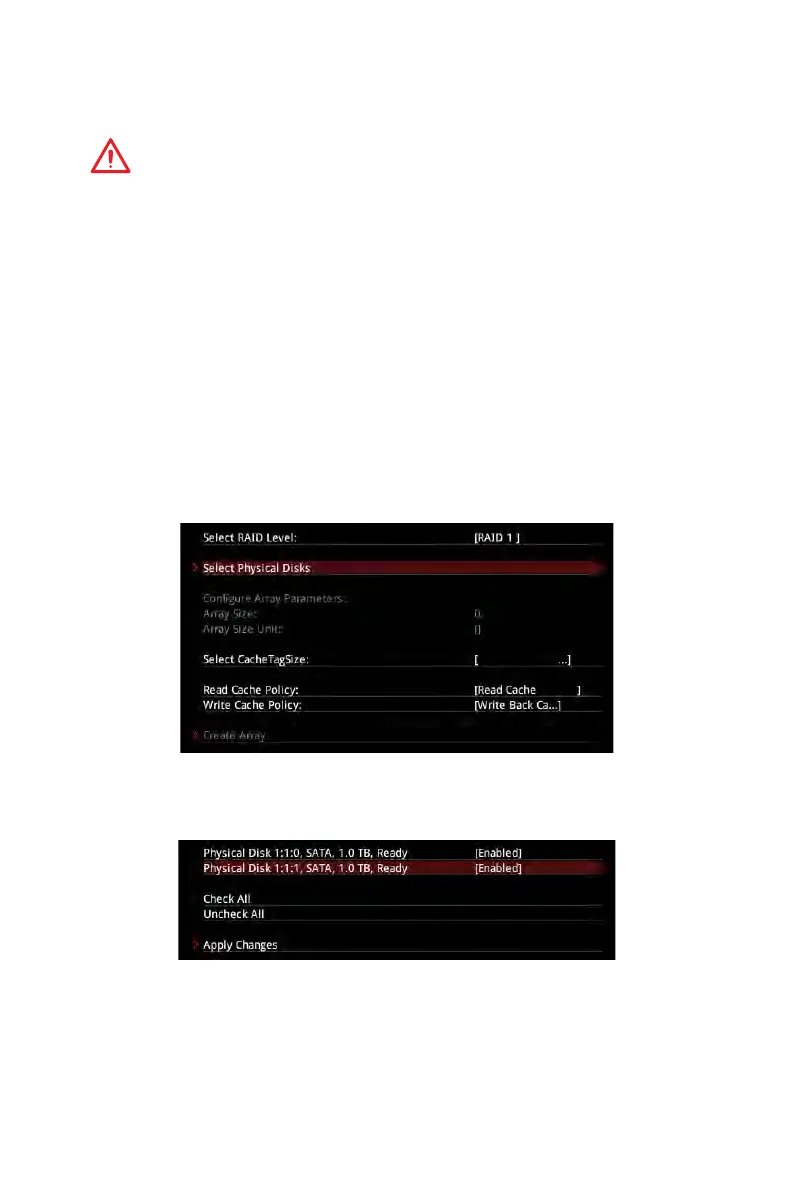 4. Enter Select Physical Disks sub-menu, select member disks by changing the