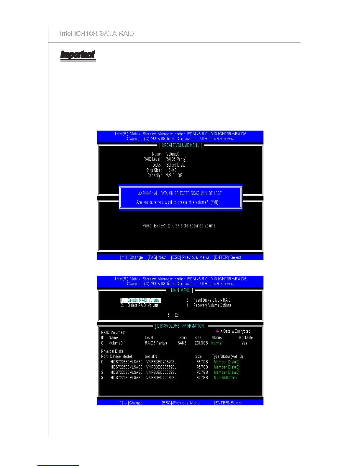 RAID volume. Press <Y> to contnue.