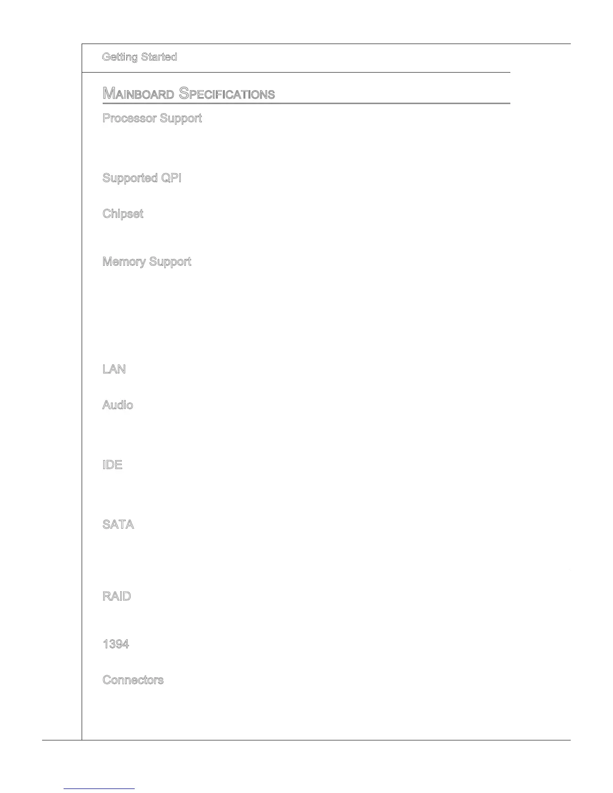 Mainboard SpecificationS