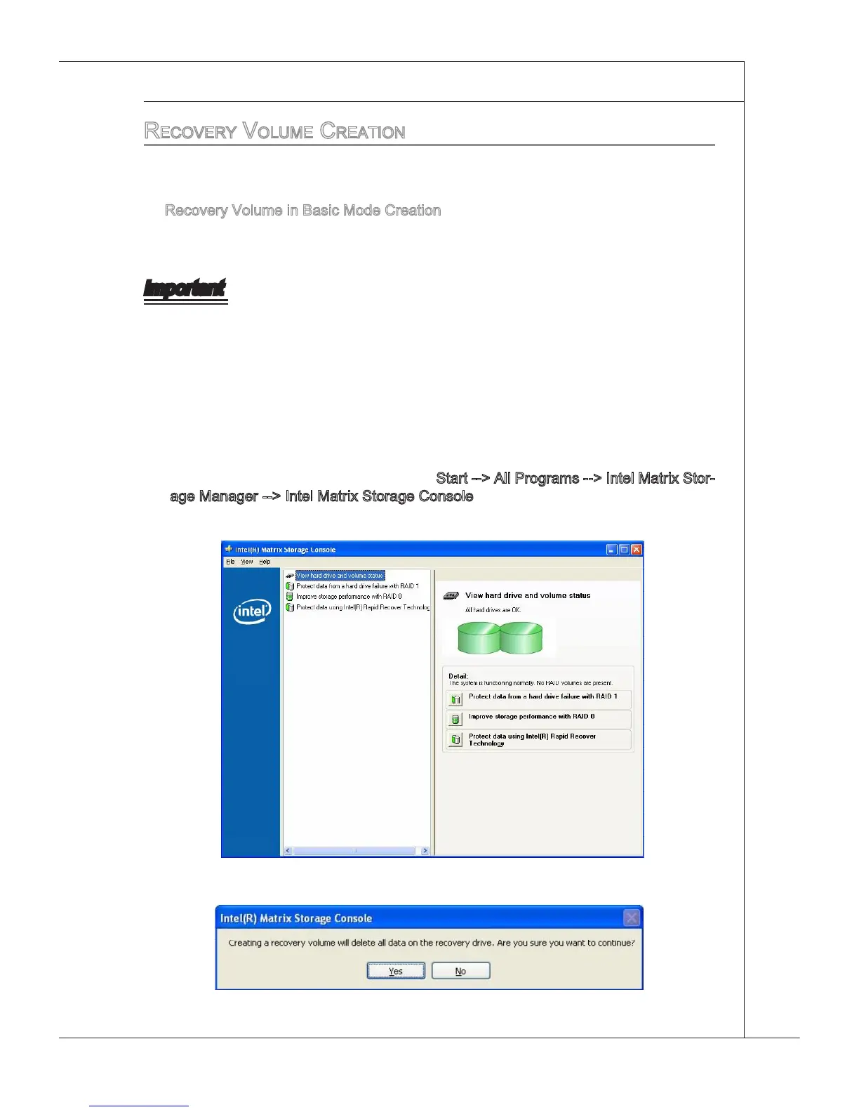 Creatng a recovery volume wll permanently delete any exstng data on the drve se-