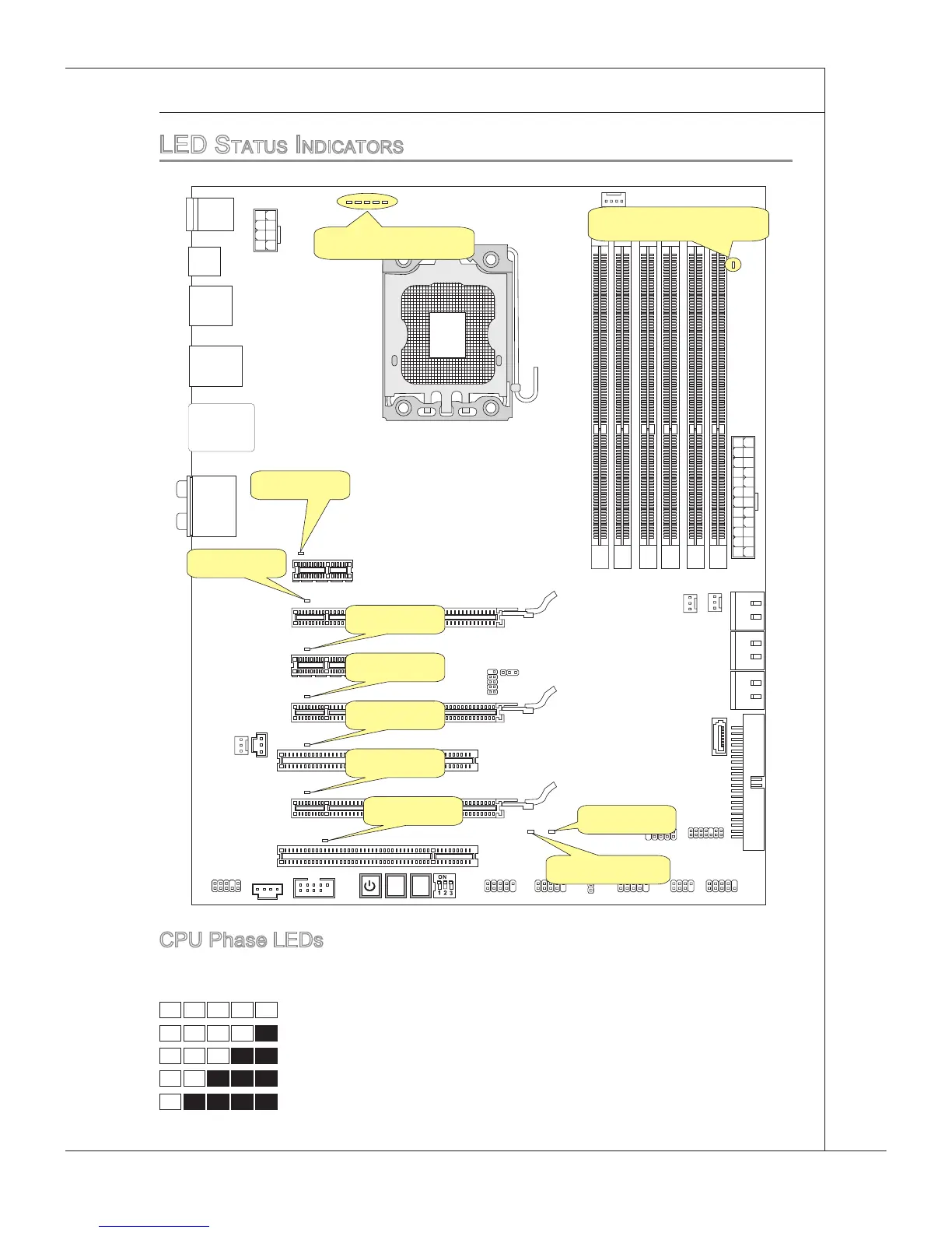 These LEDs ndcate the current CPU power phase mode. Follow the nstructons