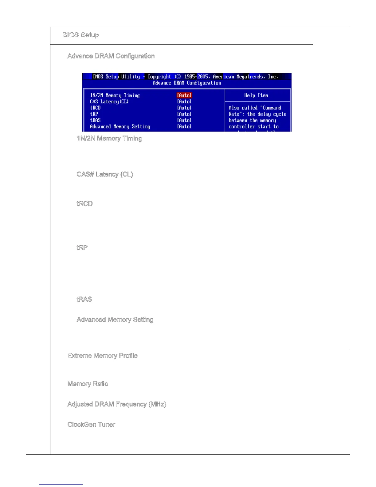 Settng to [Auto] enables DRAM tmngs automatcally to be determned by BIOS