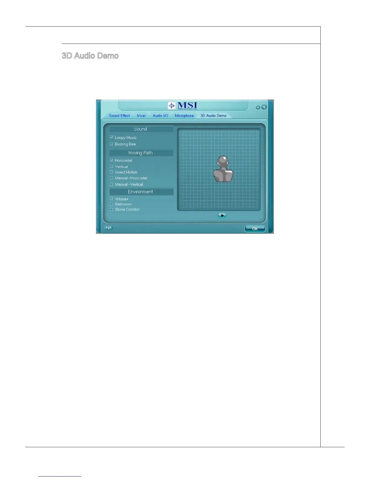 In ths tab you may adjust your 3D postonal audo before playng 3D audo applcatons