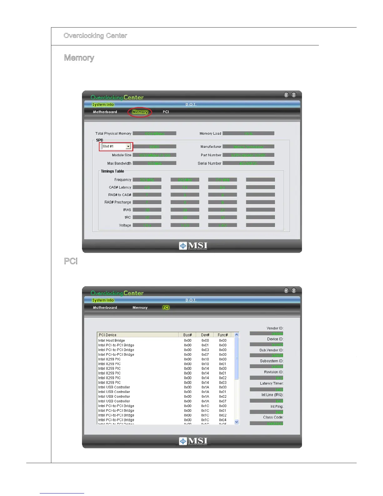 Clck Memory to read the nformaton of each memory DIMM slot. You can select a
