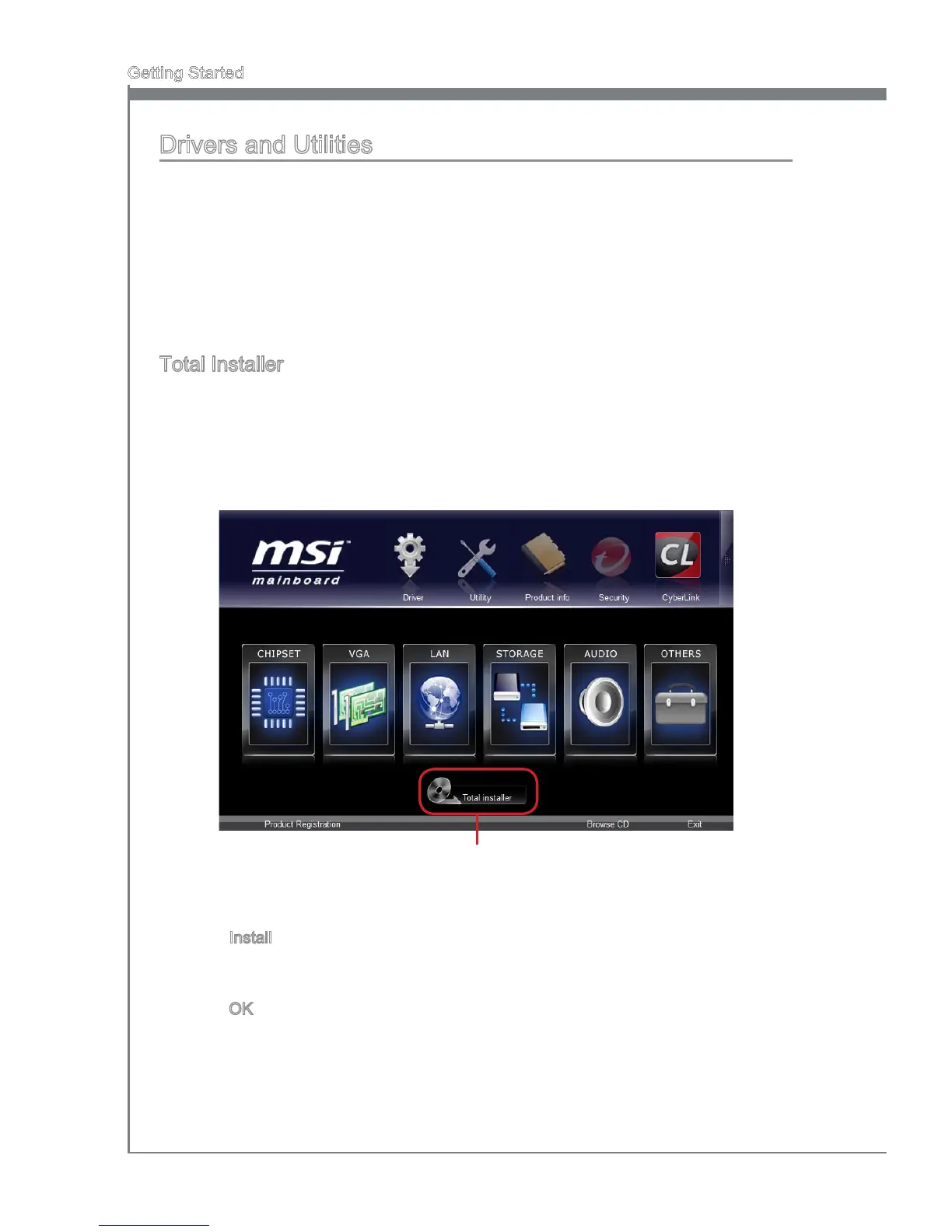 Insert MSI Drver Dsc nto the optcal drve. The setup screen wll automatcally