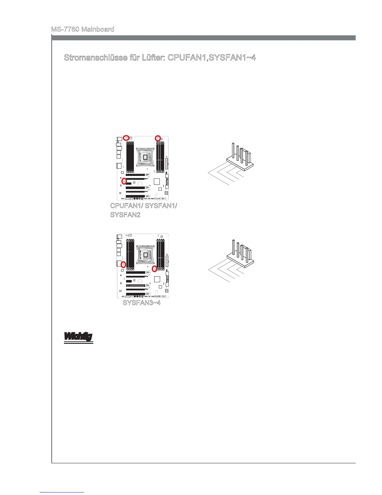 Stromanschlüsse für Lüfter: CPUFAN1,SYSFAN1~4