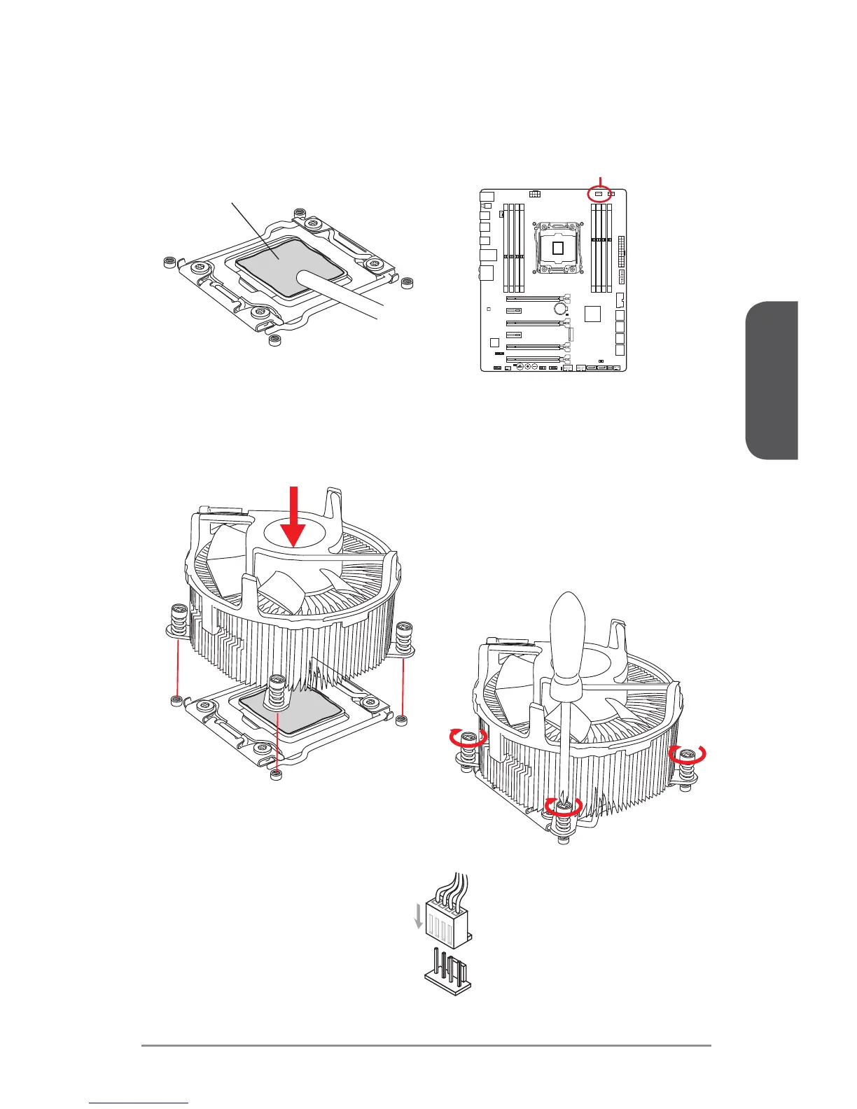 11. Place the heatsink on the mainboard with the fan’s wires facing towards the fan