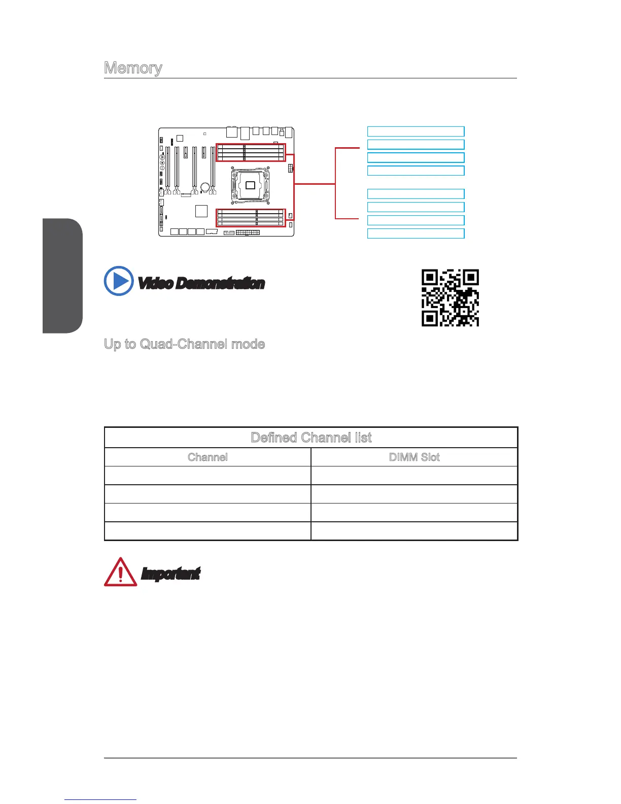 This mainboard supports up to four memory channels. Two DIMM slots provide a