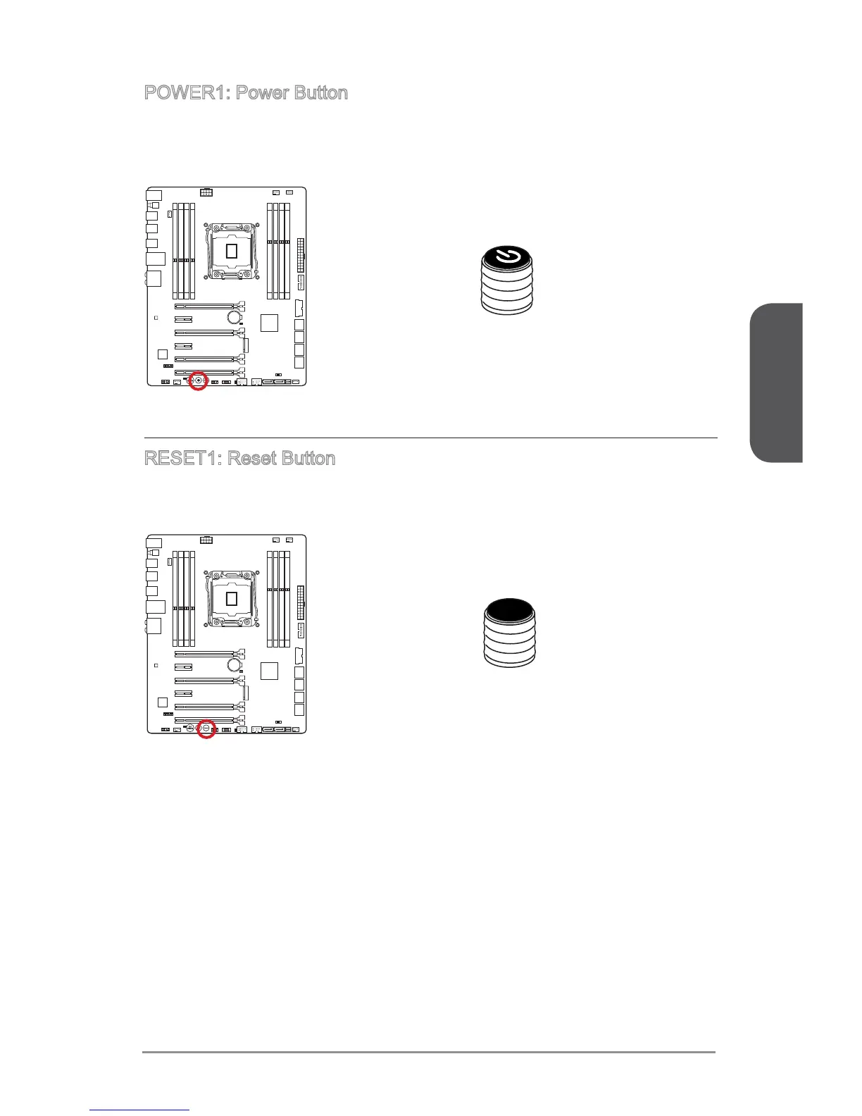 MSI X99A SLI PLUS - POWER1: Power Button; RESET1: Reset Button