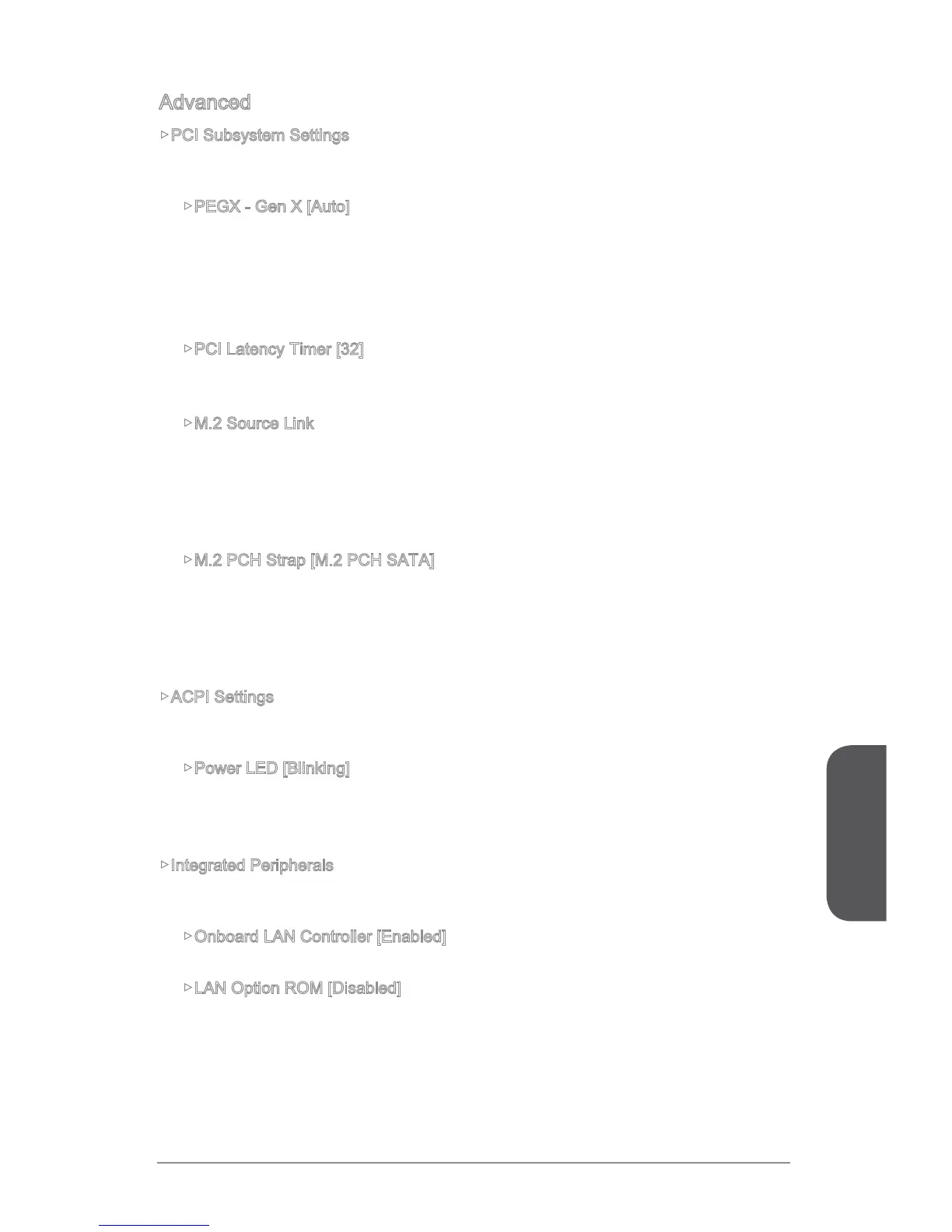 Sets PCI, PCI express interface protocol and latency timer. Press <Enter> to enter the