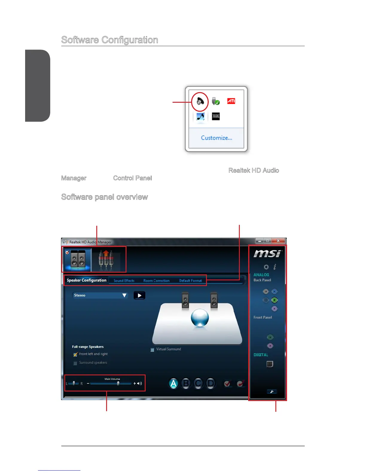 The following gure describes the function of the Realtek HD Audio Manager panel.
