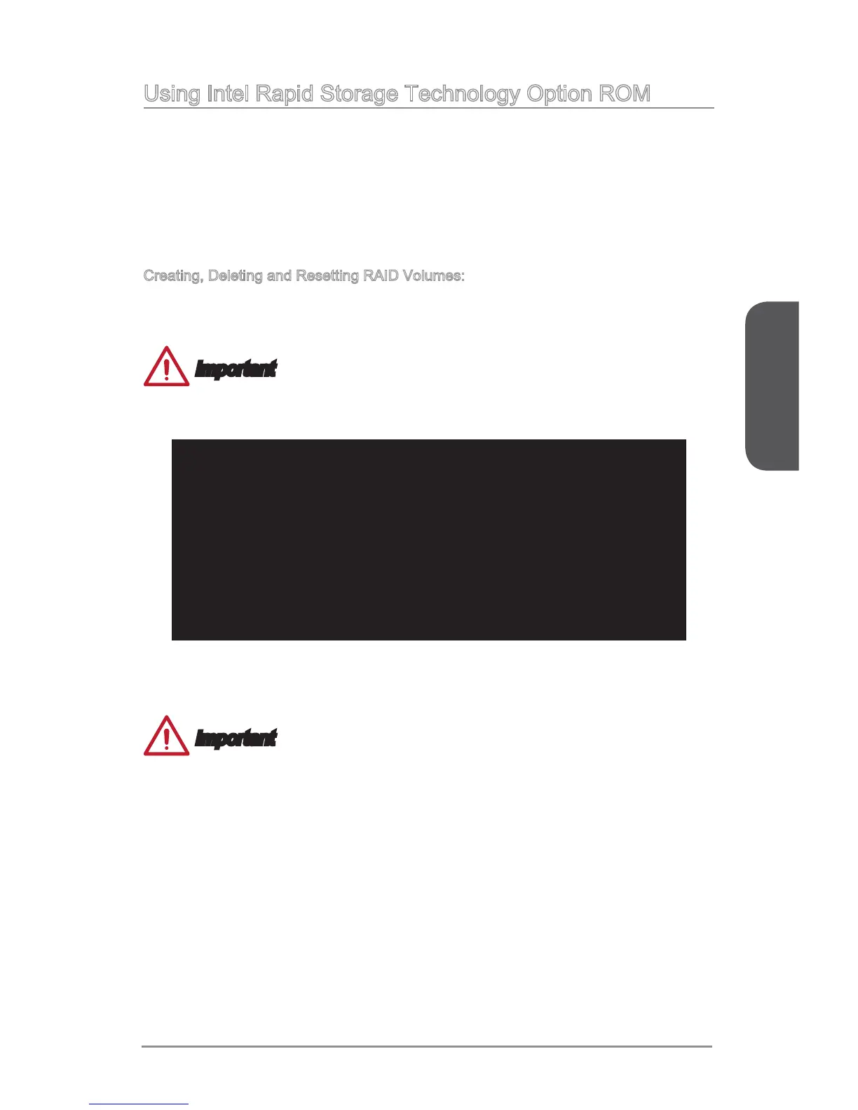 stored within the Intel RAID Option ROM. During the Power-On Self Test (POST), the
