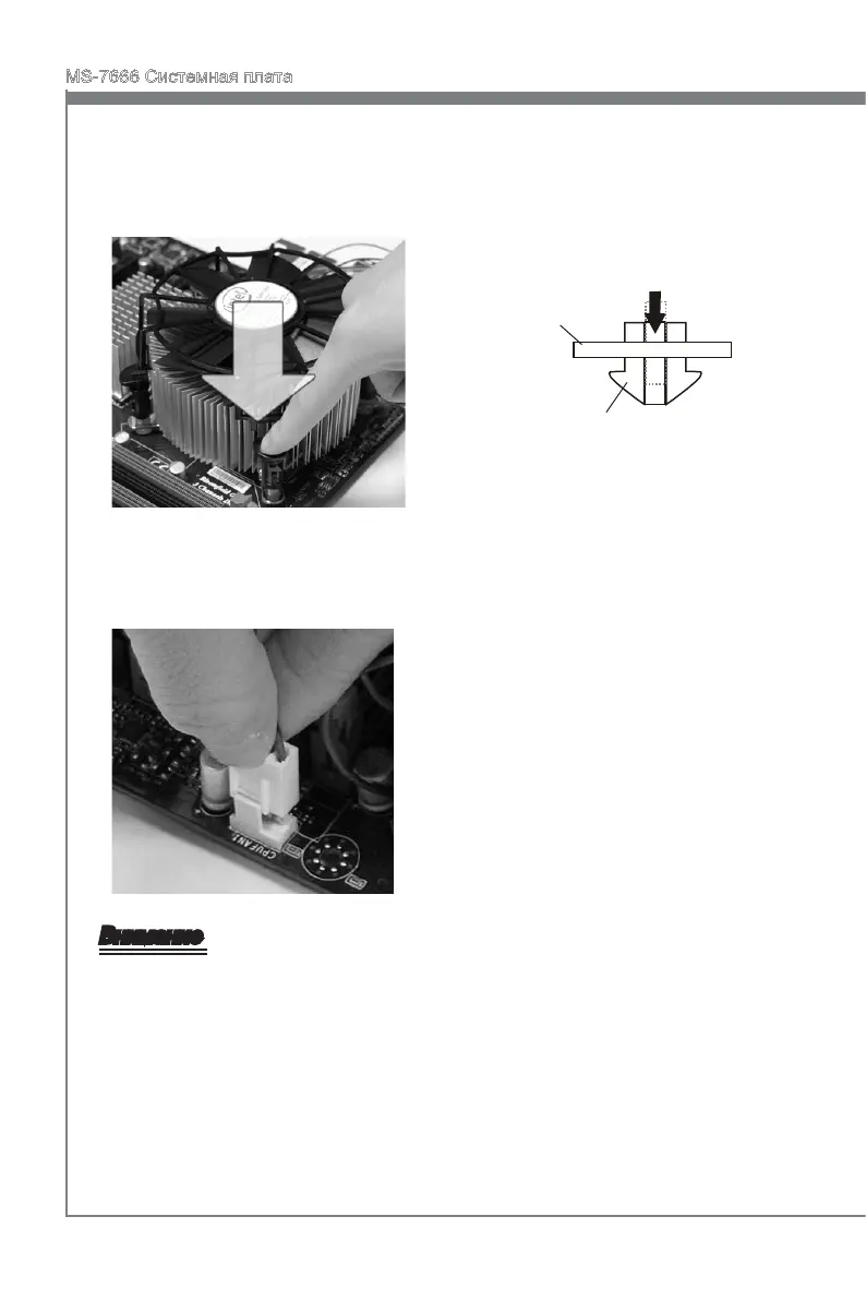 демонстрации установки вентилятора. Общий вид системной платы зависит от