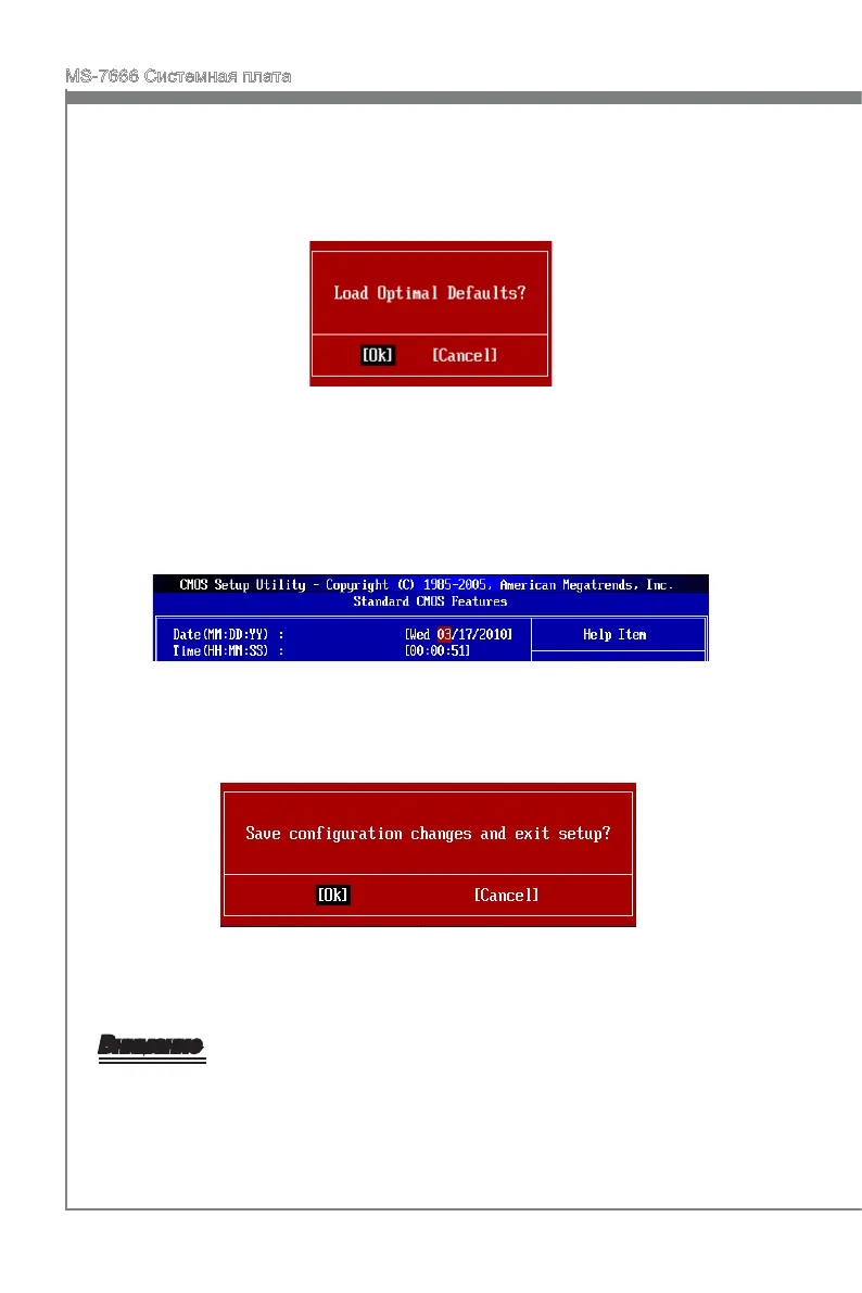 Optimized Defaults и нажмите <Enter> , появится следующее сообщение:
