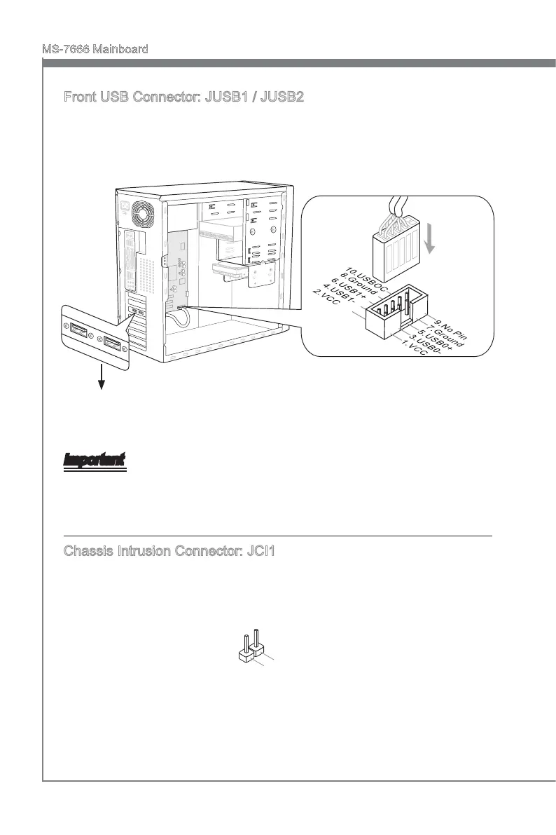 This connector connects to the chassis intrusion switch cable. If the chassis is opened,