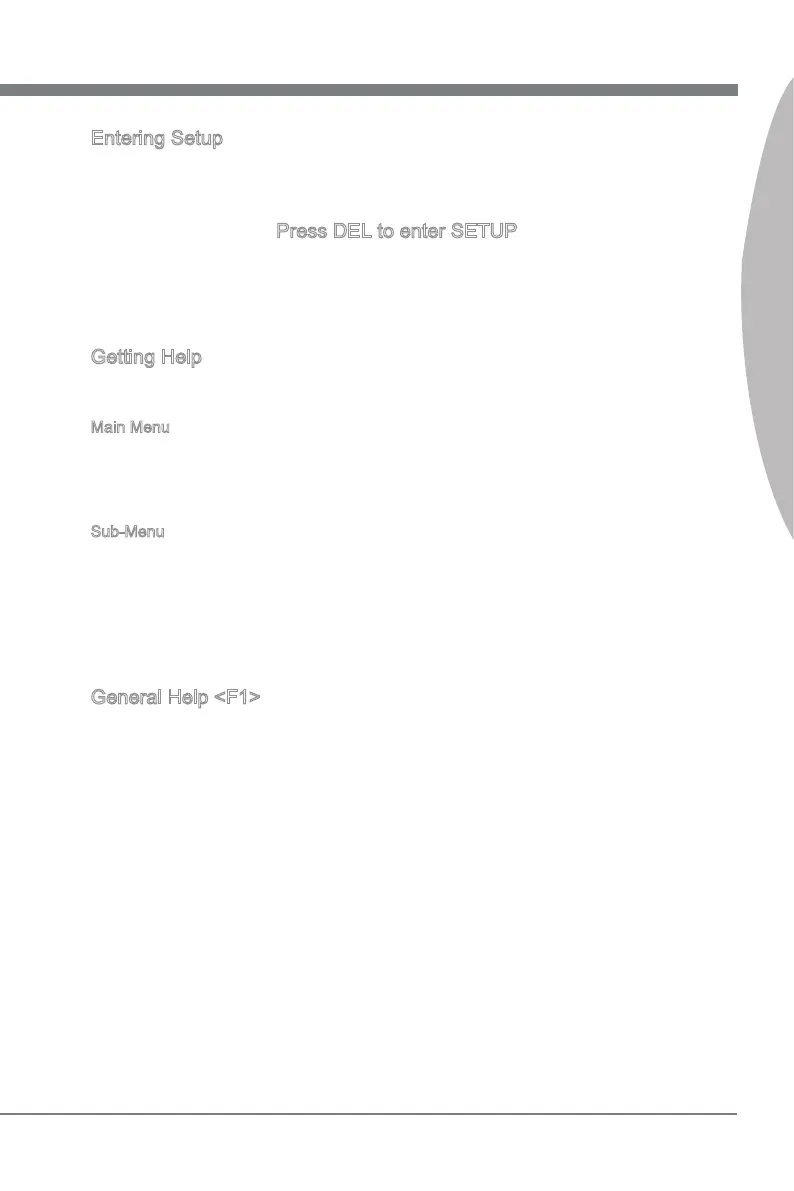 use and the possible selections for the highlighted item. Press <Esc> to exit the Help