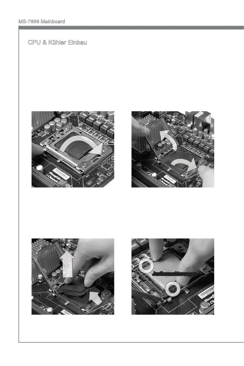 Wenn Sie die CPU einbauen, stellen Sie bitte sicher, dass Sie auf der CPU einen Kühler