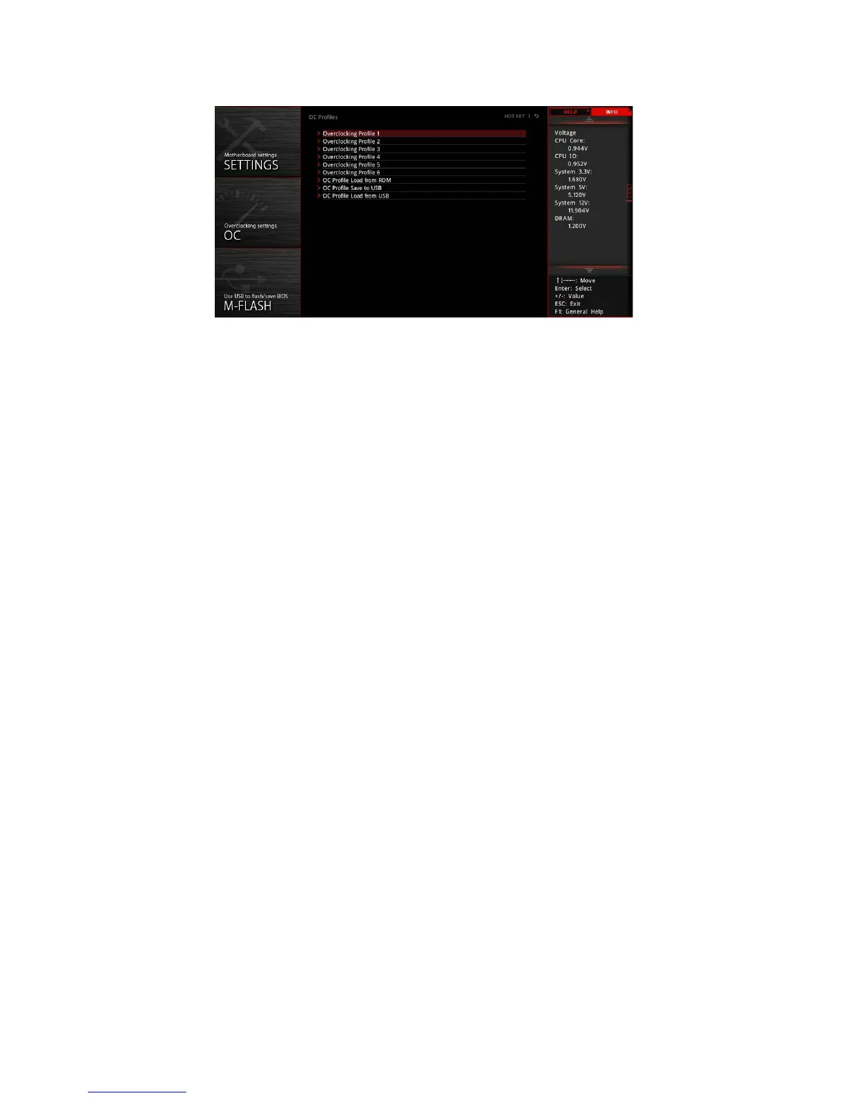 Overclocking Profile 1/ 2/ 3/ 4/ 5/ 6 management. Press <Enter> to enter the sub-