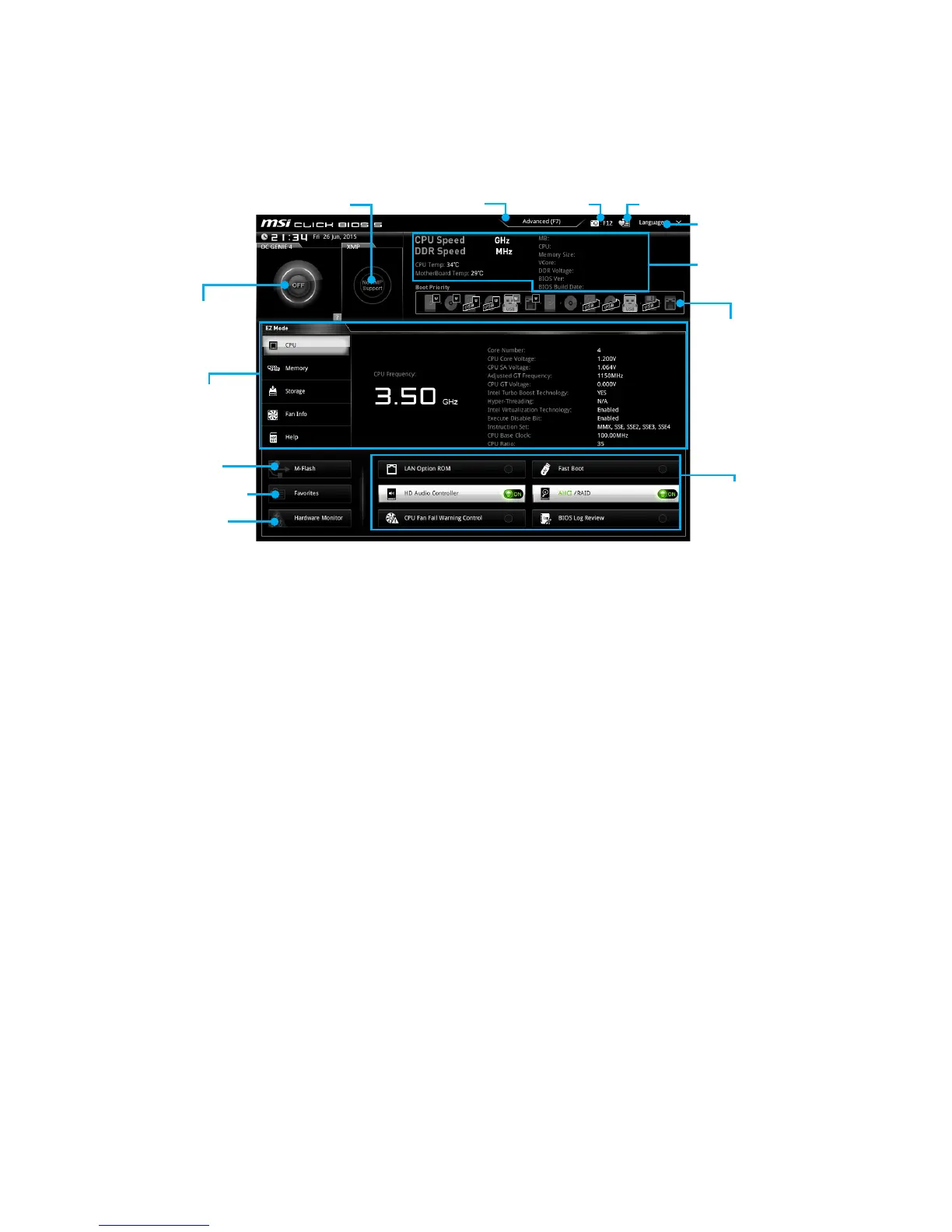 ● System information - shows the CPU/ DDR speed, CPU/ MB temperature, MB/