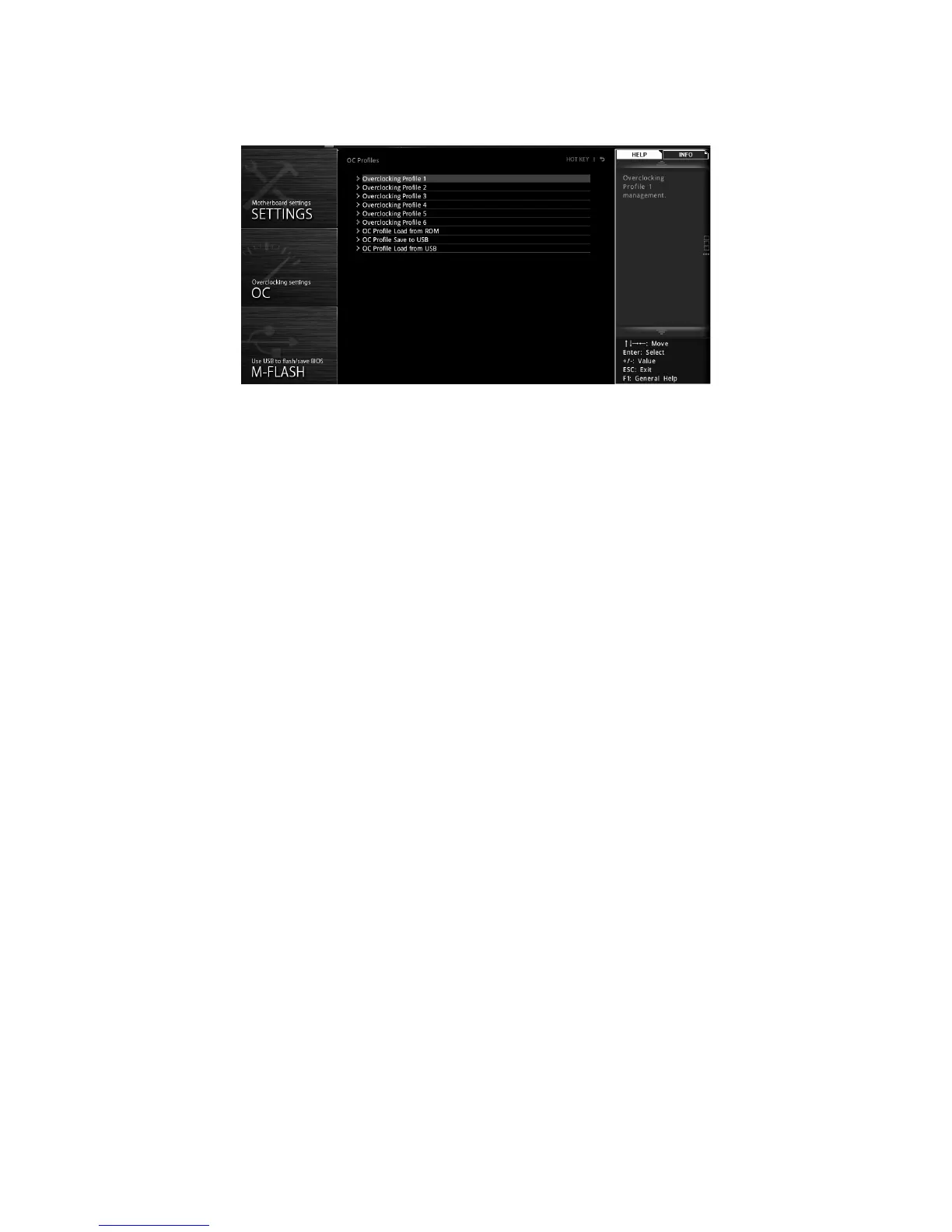 Overclocking Profile 1/ 2/ 3/ 4/ 5/ 6 management. Press <Enter> to enter the sub-