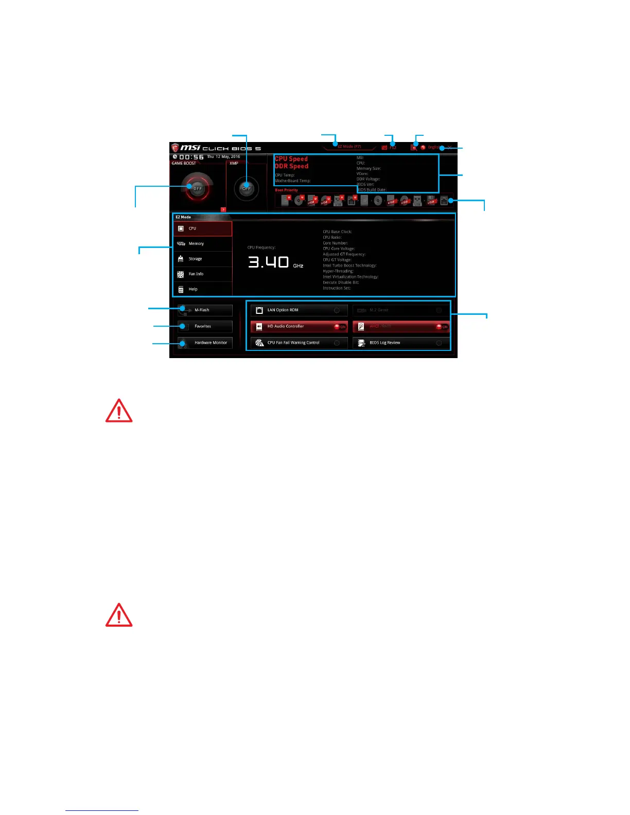 y System information - shows the CPU/ DDR speed, CPU/ MB temperature, MB/ CPU