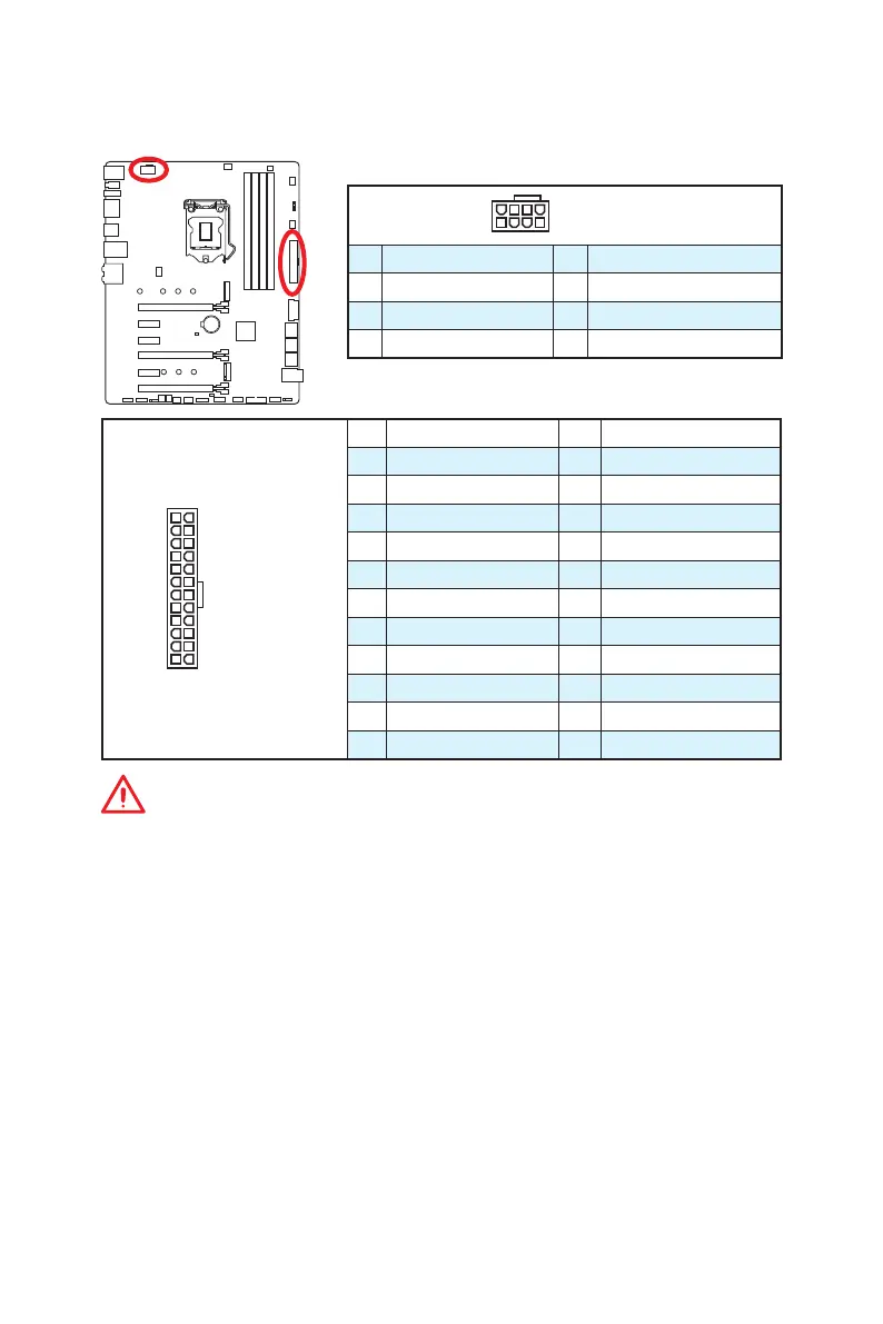 CPU_PWR1, ATX_PWR1: Stromanschlüsse