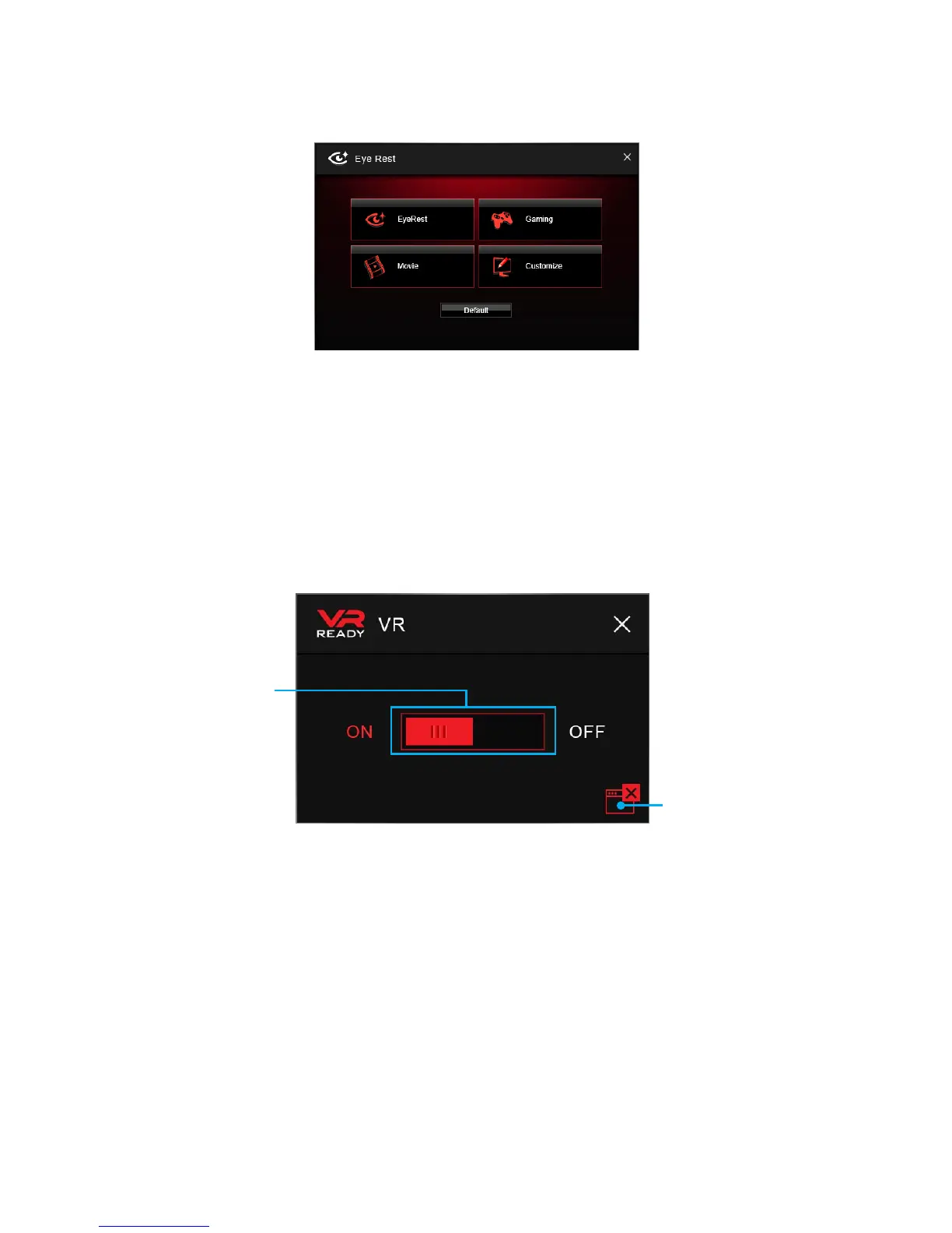 y VR ON/ OFF -enables or disables VR settings.