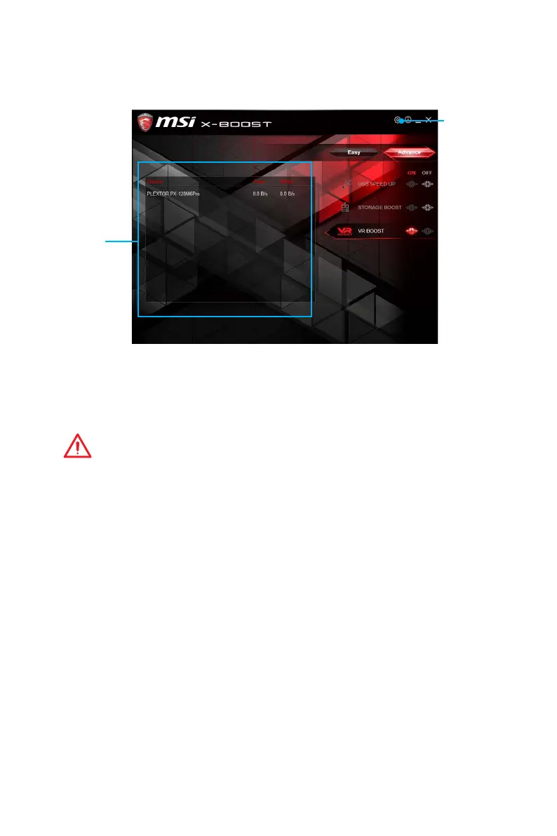 In Advance page, you can enable the USB SPEED UP, the STORAGE BOOST and VR