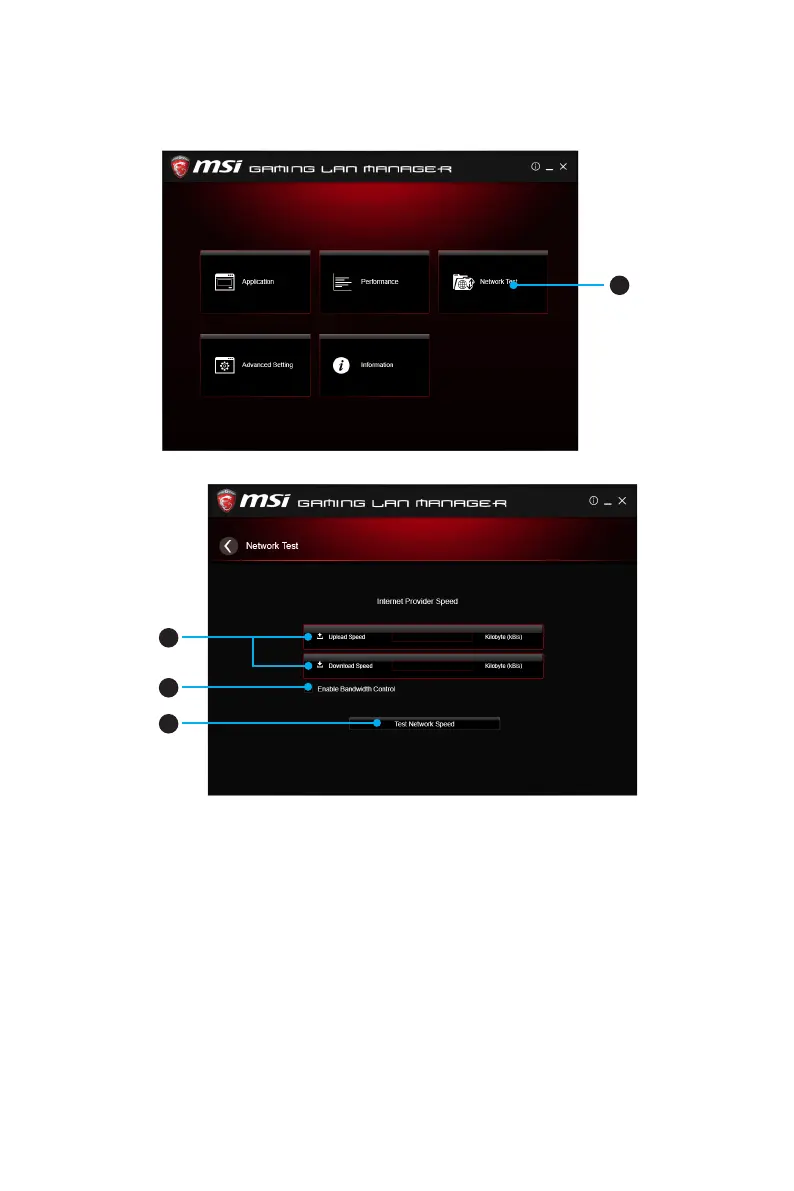 1. Click the Network Test block in GAMING LAN MANAGER.