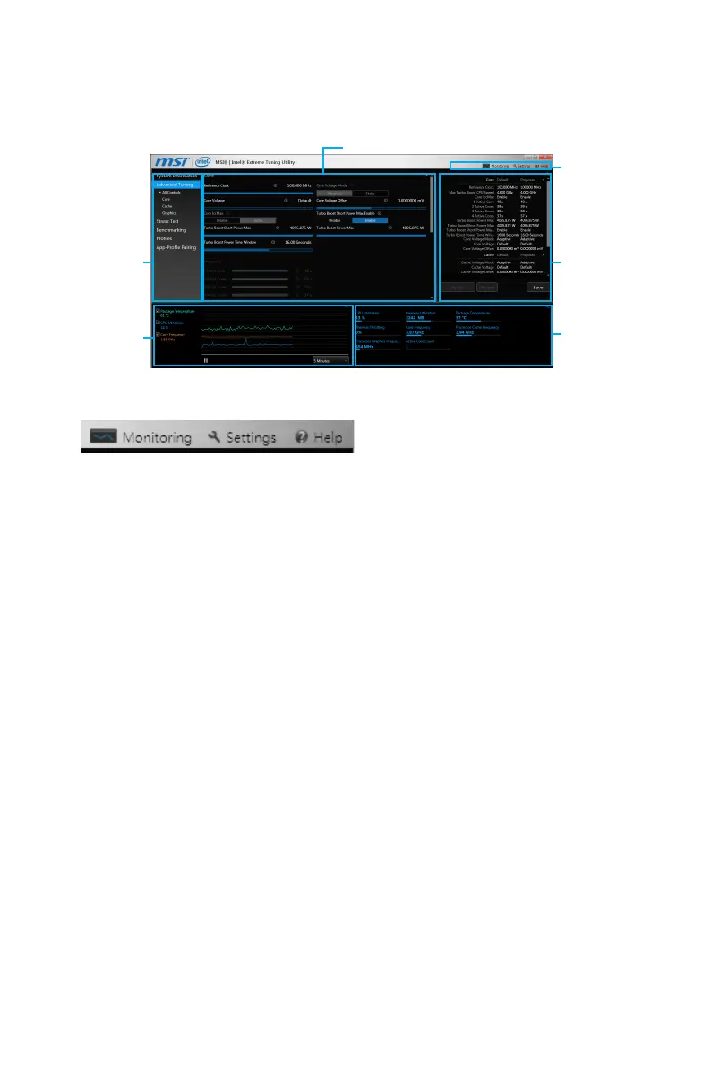 y Navigation - lists all of the major functions of Intel XTU.