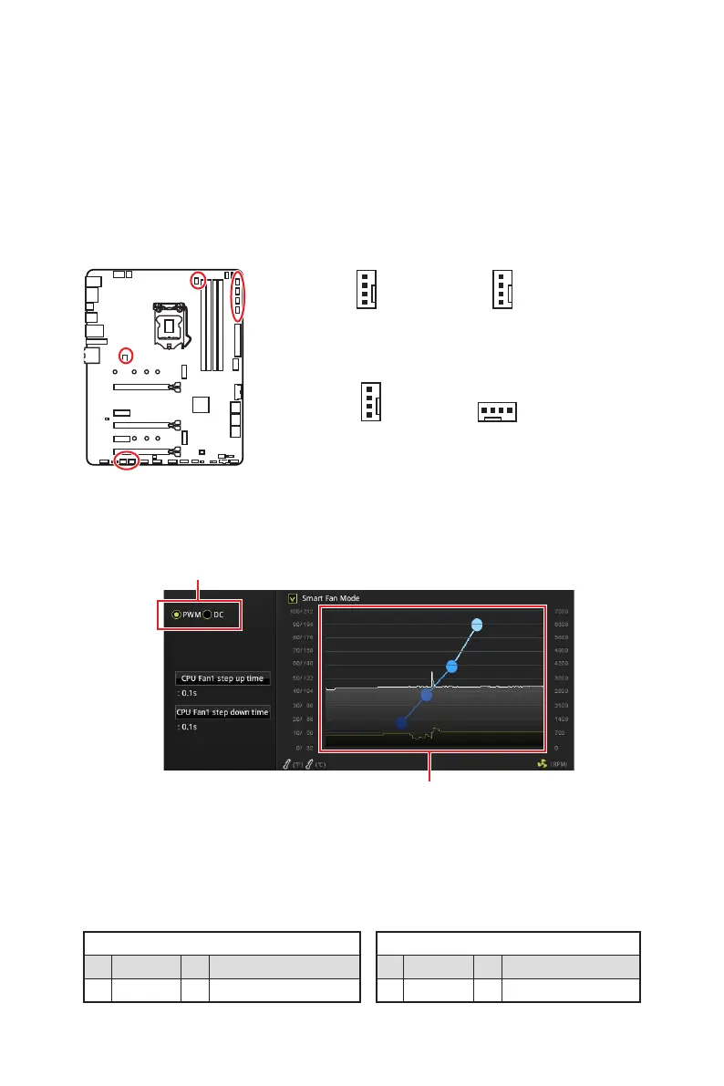 CPU_FAN1, PUMP_FAN1, SYS_FAN1~6: Разъемы вентиляторов