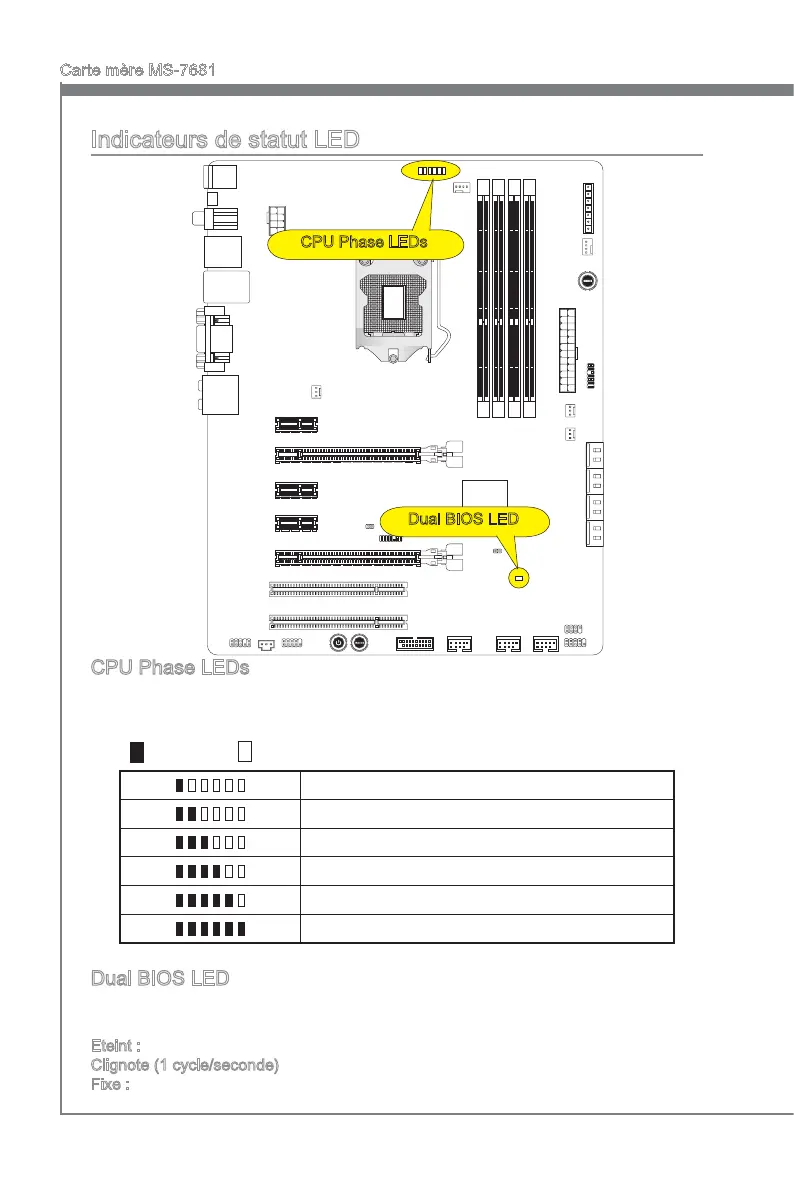 Ces LEDs ndquent le mode actuel de phase d'almentaton du CPU. Suvez les