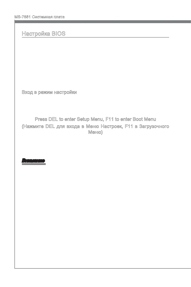 ниже сообщение, нажмите клавишу <DEL> для входа в режим настройки.