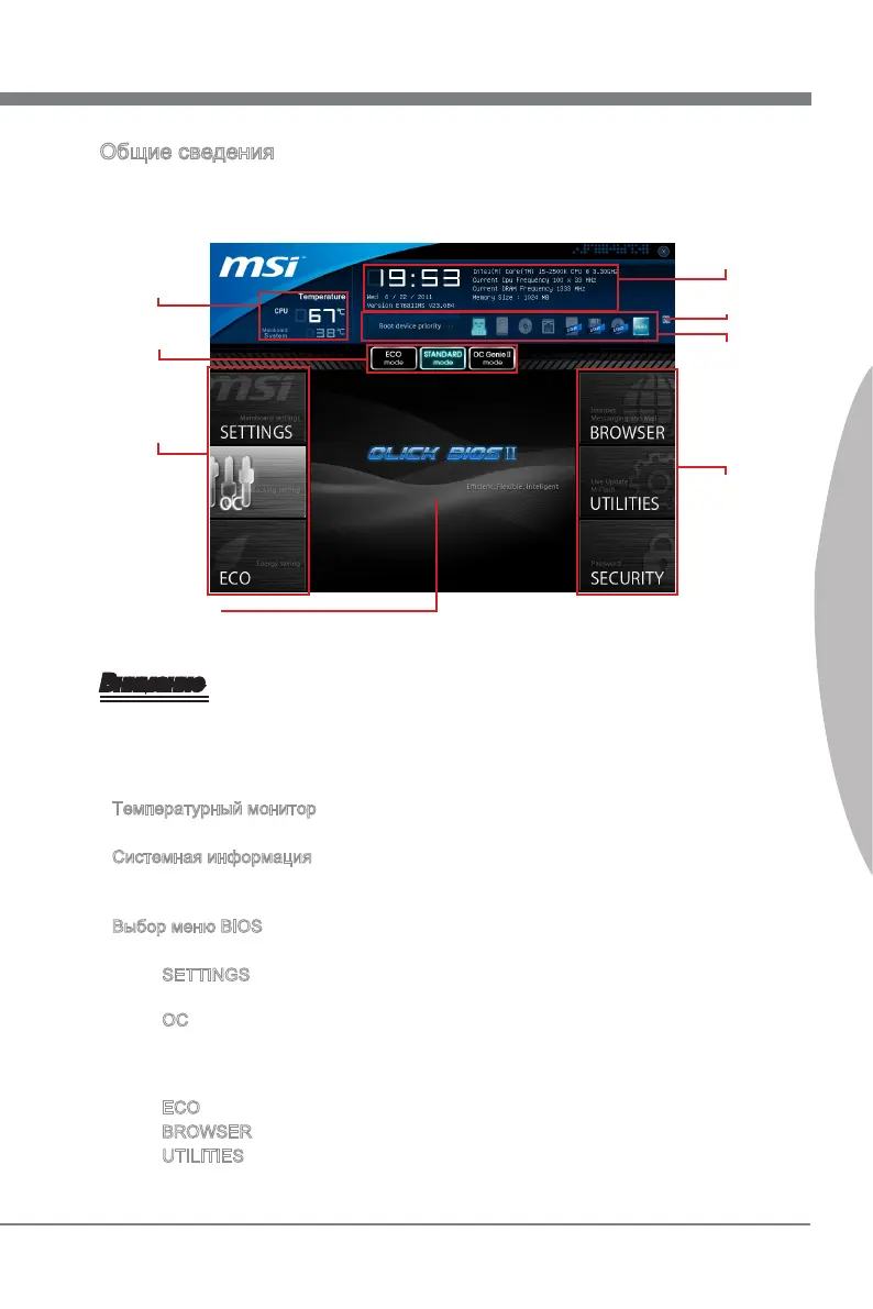 В этом блоке показано время, дата, название CPU, частоту CPU, частоту DRAM,