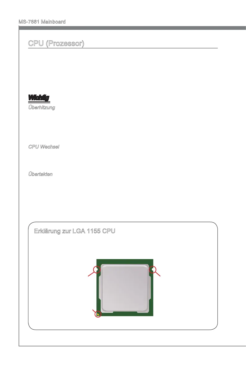ausgeschaltet und der Netzstecker gezogen st, um de Unversehrthet der CPU zu