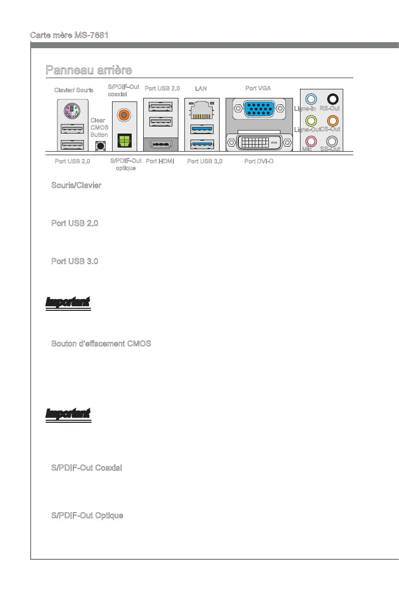 Ce connecteur est utlsé pour reler l’nterface S/PDIF (Sony et Phlps Dgtal Intercon