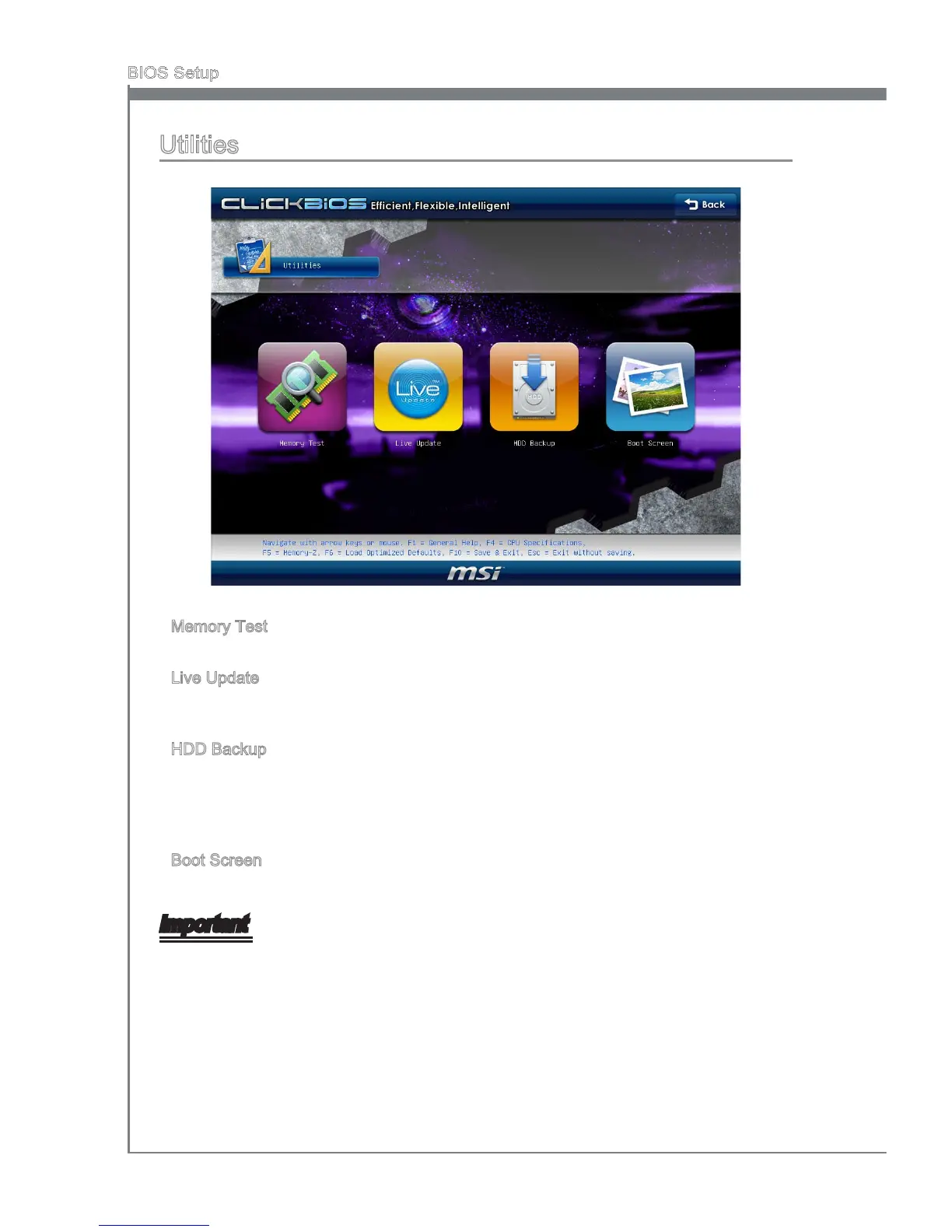 Before you enter to the Lve Update/ HDD Backup menu, please place the MSI Drver