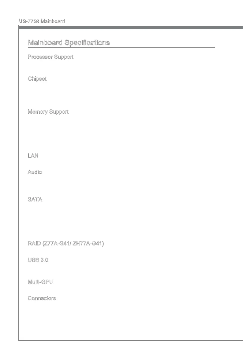 MSI Z77A-G41 Series - Mainboard Specifications; Processor Support; Chipset; Memory Support