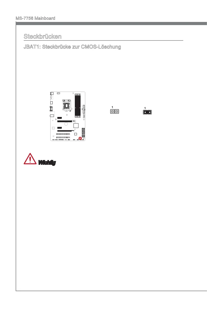 m CMOS zu löschen. Danach entfernen Se de Steckbrücke. Versuchen Se nemals