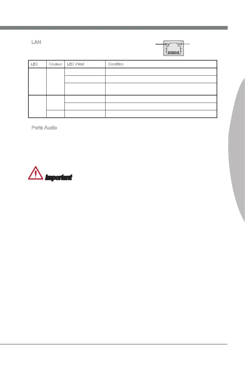 Bleu-Lgne n : sert à connecter les pérphérques de sorte audo externe.