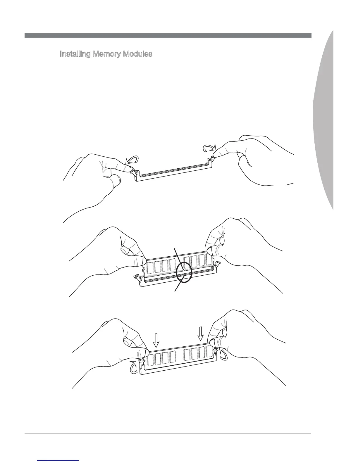 memory module nto the DIMM slot. The memory module has an o󰘯-center notch on