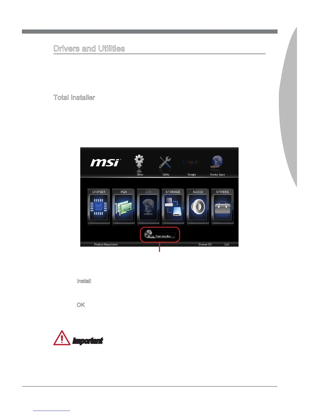 Insert MSI Drver Dsc nto the optcal drve. The setup screen wll automatcally